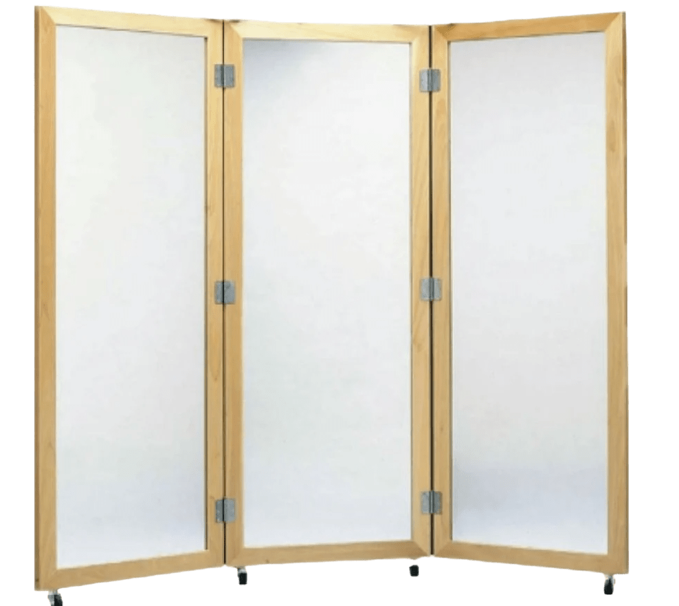 مراية متحركة 3 اوجه بمفصلات ومحاطة بالخشب الزان مساحة الوجه 2 متر ارتفاع في 60 سم عرض